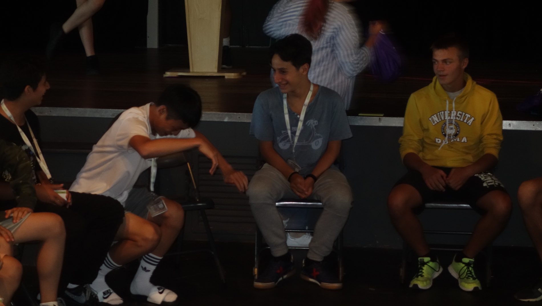 Rematamos la noche con una segunda actividad donde los alumnos tenían que encontrar por el campus a 4 miembros del staff. Estaban agazapados entre matorrales, subidos a los árboles… para entonces nuestra cuadrilla masculina estaba acelerada y les dije por favor que no hicieran ningún tipo de «placaje». Que bastaba con encontrarlos y hacerles una foto de testimonio.