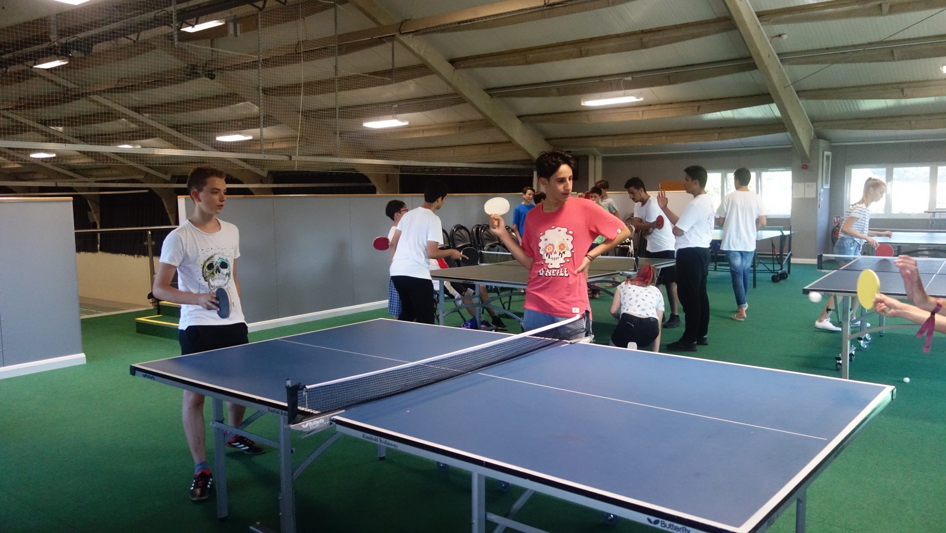 Tras la cena, donde no divisé ni verduras ni lechugas en las bandejas de los chicos, nos fuimos a la competición de la tarde-noche con deportes varios. Chicos Vs Chicas.