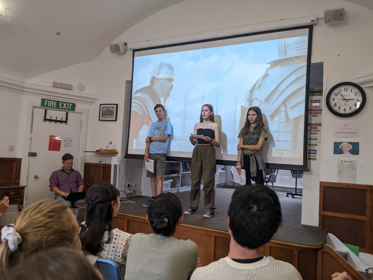 Tuvimos nuestra mini reunión para hablar de la logística de regreso y saltamos a las TED Talk donde participarían nuestras Tesorinas Lucía y Marta. Su breve intervención, escueta pero llena de contenido, la llevaron a cabo delante de todos los alumnos del programa Think Global. Bajo el contexto de las antiguas civilizaciones, abordaron el tema de las invasiones, la guerra y el hambre. Cada mini grupo, una civilización antigua: vikingos, sumerios, babilónicos…civilizaciones cuyos cimientos determinaron el futuro del mundo.