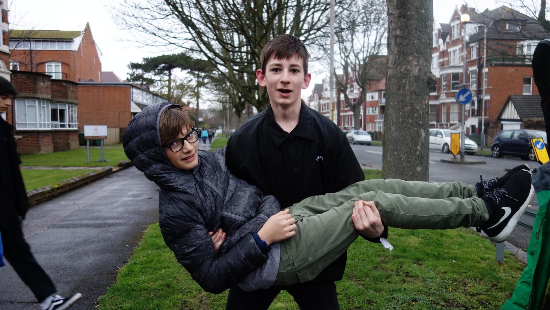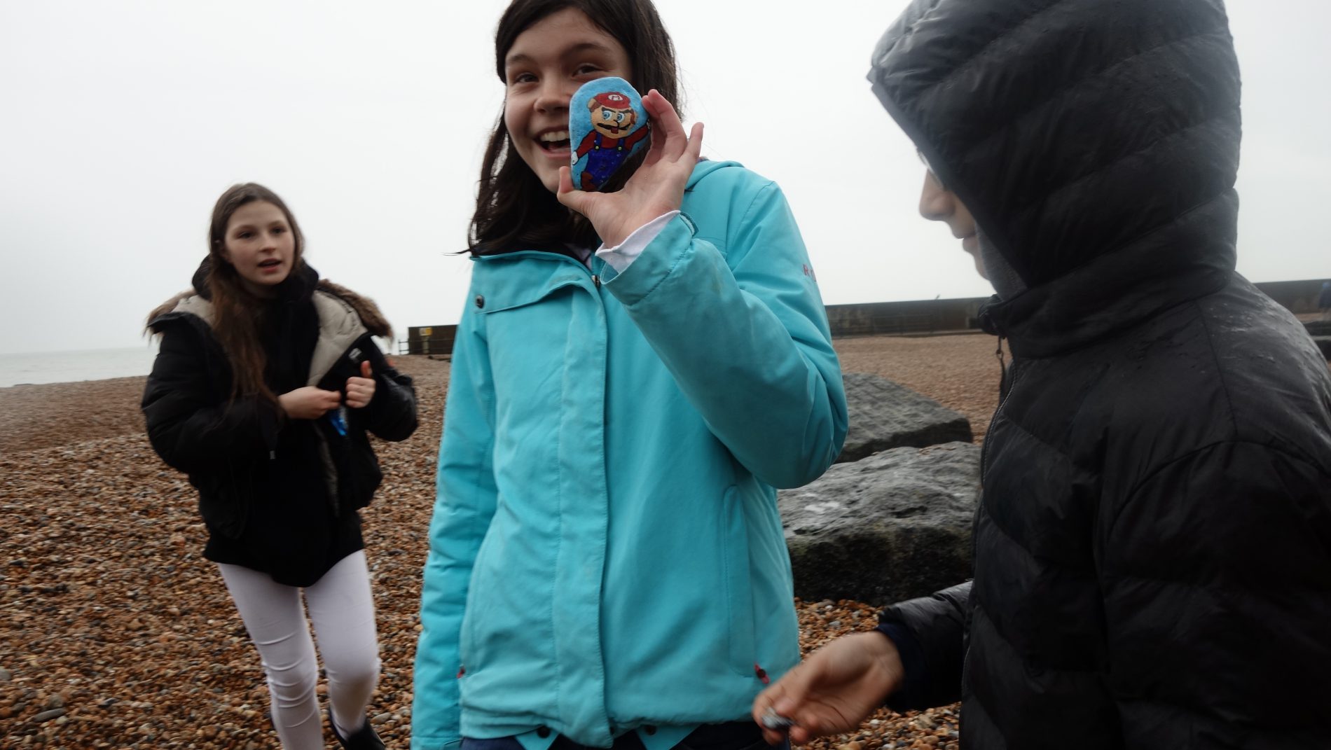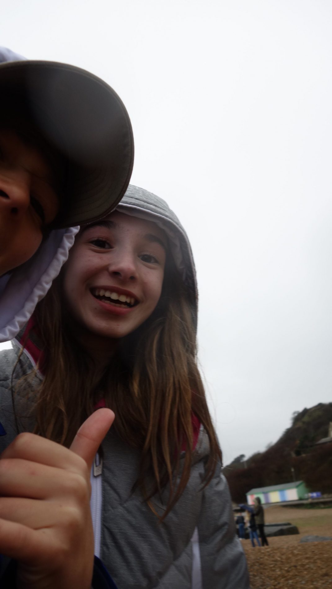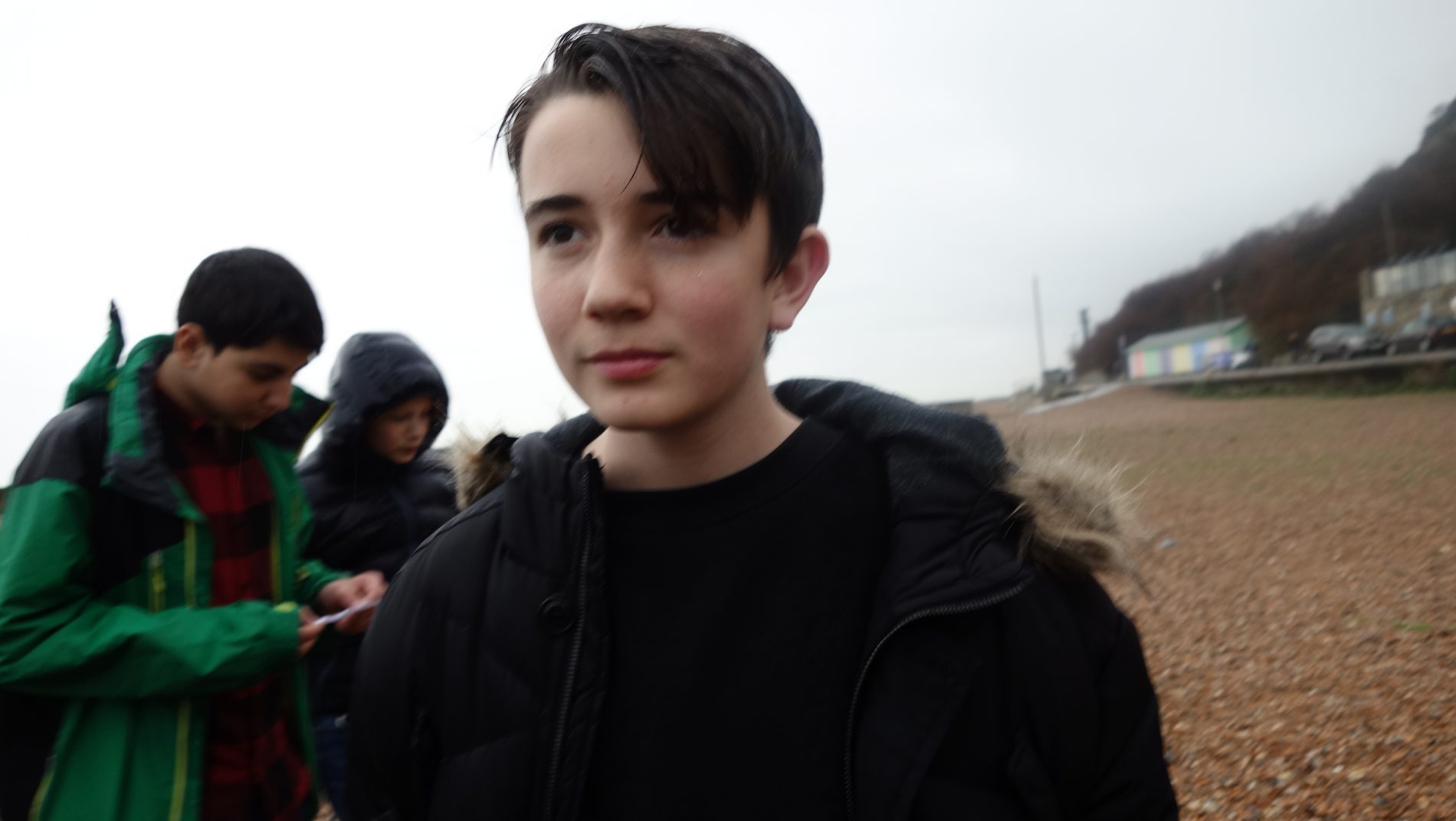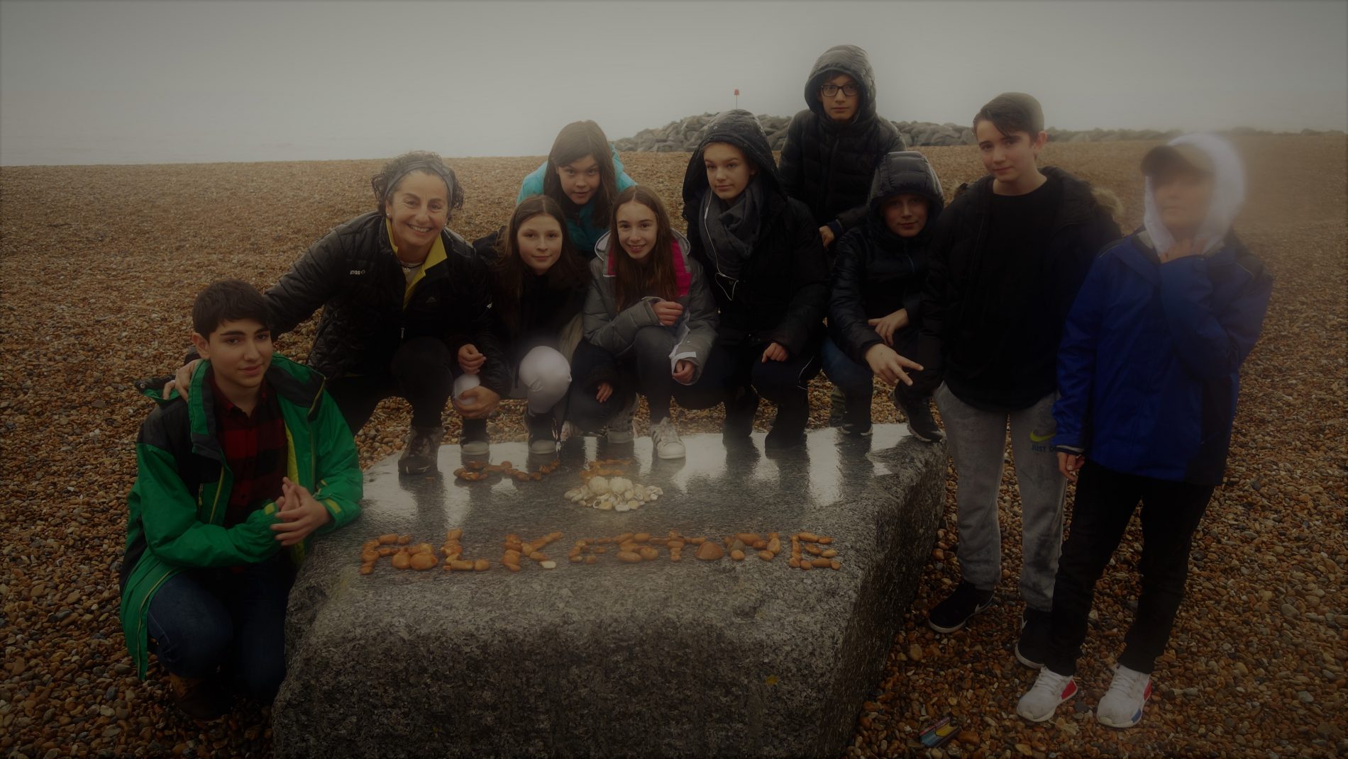Durante la primera hora realizamos las máscaras y saltamos al reto fotográfico que les teníamos preparado. No fue fácil motivarles. Aunque no hacía frío, llovía. Y el tema de ir a la playa, no le encontraban sentido alguno. Pero en territorio británico, la lluvia no es impedimento. Sino, no saldrían de sus casas. Lo tenemos bien asimilado ya. Y resultó ser una chulada. Dio gusto ver el paso del «estado remolón», al trabajo en grupos y la proactividad. Ahora, para llegar ahí, me tuvo que salir otro mechón verde en formato rizo.