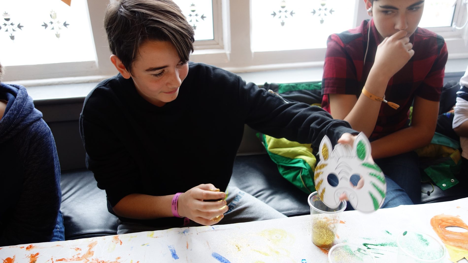 Compartimos un rato de nuestra comida y tras su clase de «active English», comenzó la acción de la tarde. Dos opciones, manualidades para preparar las máscaras de la disco del viernes o natación. A ésto último, solo se apuntaron nuestros tres mosqueteros y cancelamos esa actividad. Para hablar español a remojo, que queden éste verano en la playa de Denia. Es así o no?