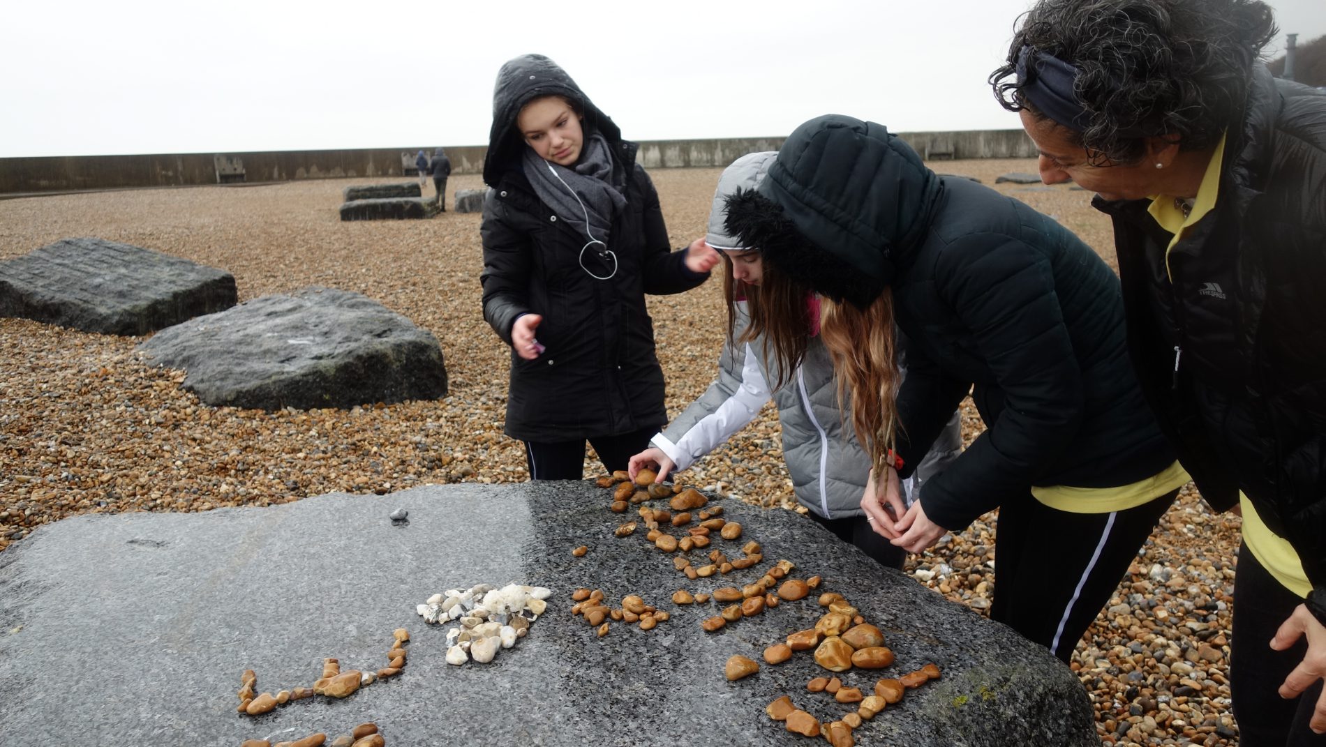 Teníamos que trabajar en equipos varias opciones con material de la playa, plasmar el mensaje y realizar fotografías del proyecto y del equipo. Cómo no, Nachete lideró la fotografía con la cámara de servidora y Enzo orquestó la búsqueda de piedras singulares. Cada equipo puso en juego la creatividad. Impresionante ver los resultados en directo. Sin participación, no hay compromiso. Y verlo in situ, fue un regalo.