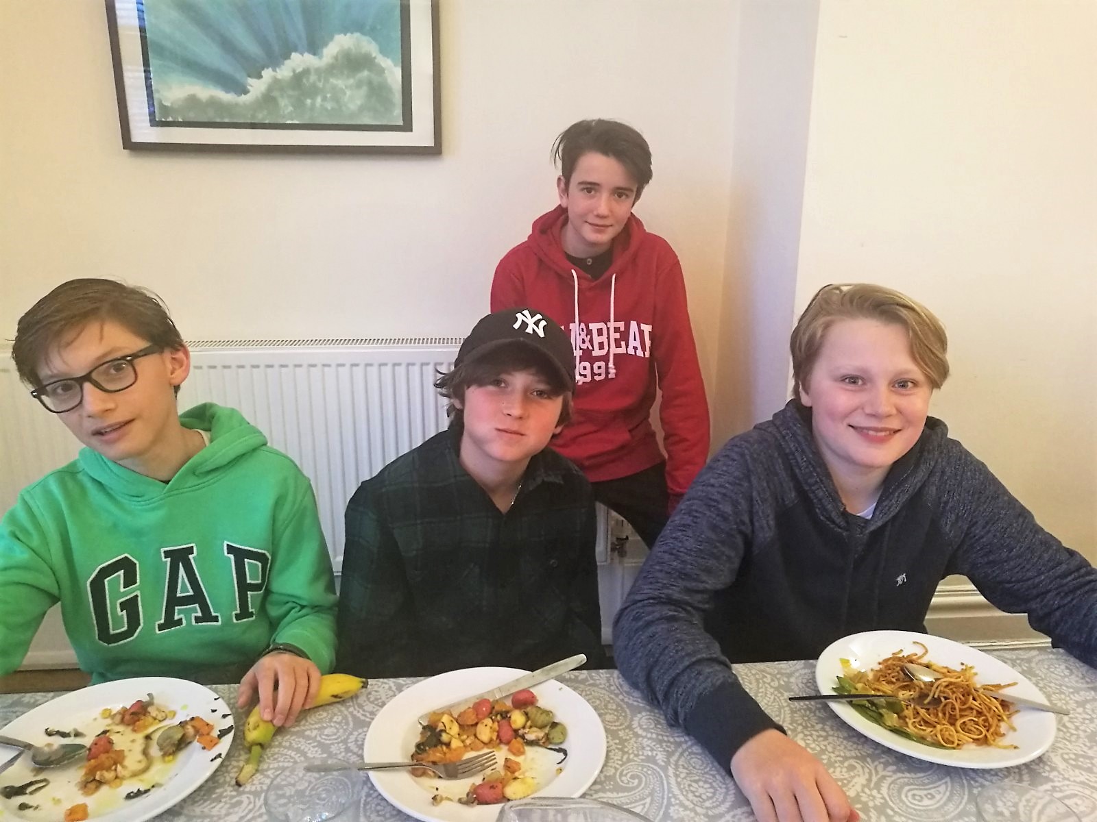 Me acerqué al comedor para ver a nuestros 3 mosqueteros a la hora de la cena. A dos carillos me estaban cenando. Les faltaba el bombo y platillo.